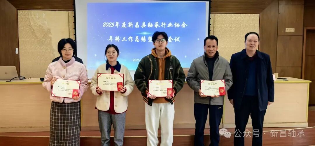 过去一年,协会始终坚持“服务轴承企业,推进行业进步”的立会宗旨,紧紧围绕引导行业发展、组织行业会议、开展行业交流、提升行业规范、加强协会党建及办好日常工作等方面开展工作。协会的工作和发展,离不开会员企业负责人的大力支持,也离不开企业相关人员的共同参与,孔波兰书记宣读了过去一年的优秀工作者名单,其中浙江五洲新春集团股份有限公司丁莲英、浙江西密克轴承股份有限公司梁雨洁、新昌县万联轴承有限公司吕志鸳、浙江嘉阳轴承有限公司洪丹丹、新昌县红利机械有限公司章国珍、新昌县新翔宇轴承有限公司石黎萍被评为轴承行业优秀统计员;浙江五洲新春集团股份有限公司张丹英、浙江陀曼智能科技股份有限公司王孟洪、浙江诚本轴承滚子有限公司王梦怡被评为优秀通讯员;浙江五洲新春集团股份有限公司杨洁获得会刊《新昌轴承》优秀组织奖。协会领导给获奖者颁发了证书和纪念品。